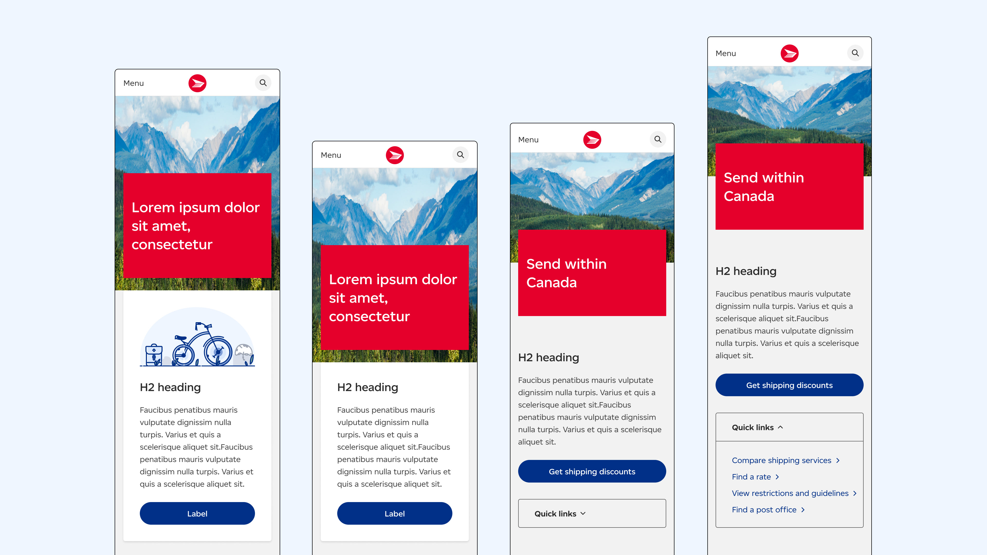 The main identifiable colours were updated and the colour palette was expanded to reflect the Canadian landscape, with colours like pine green and glacial blue. These were tested for web colour contrast and adjusted them to suit accessibility standards. New photography direction was focused on creating a narrative with images of Canadians, landscapes and CPC employees and facilities, making Canadians the heroes of the story. A custom typeface, Canadiana, provided a more modern feel for the brand, and illustrations were updated with a monochromatic blue to feel more cohesive with text.