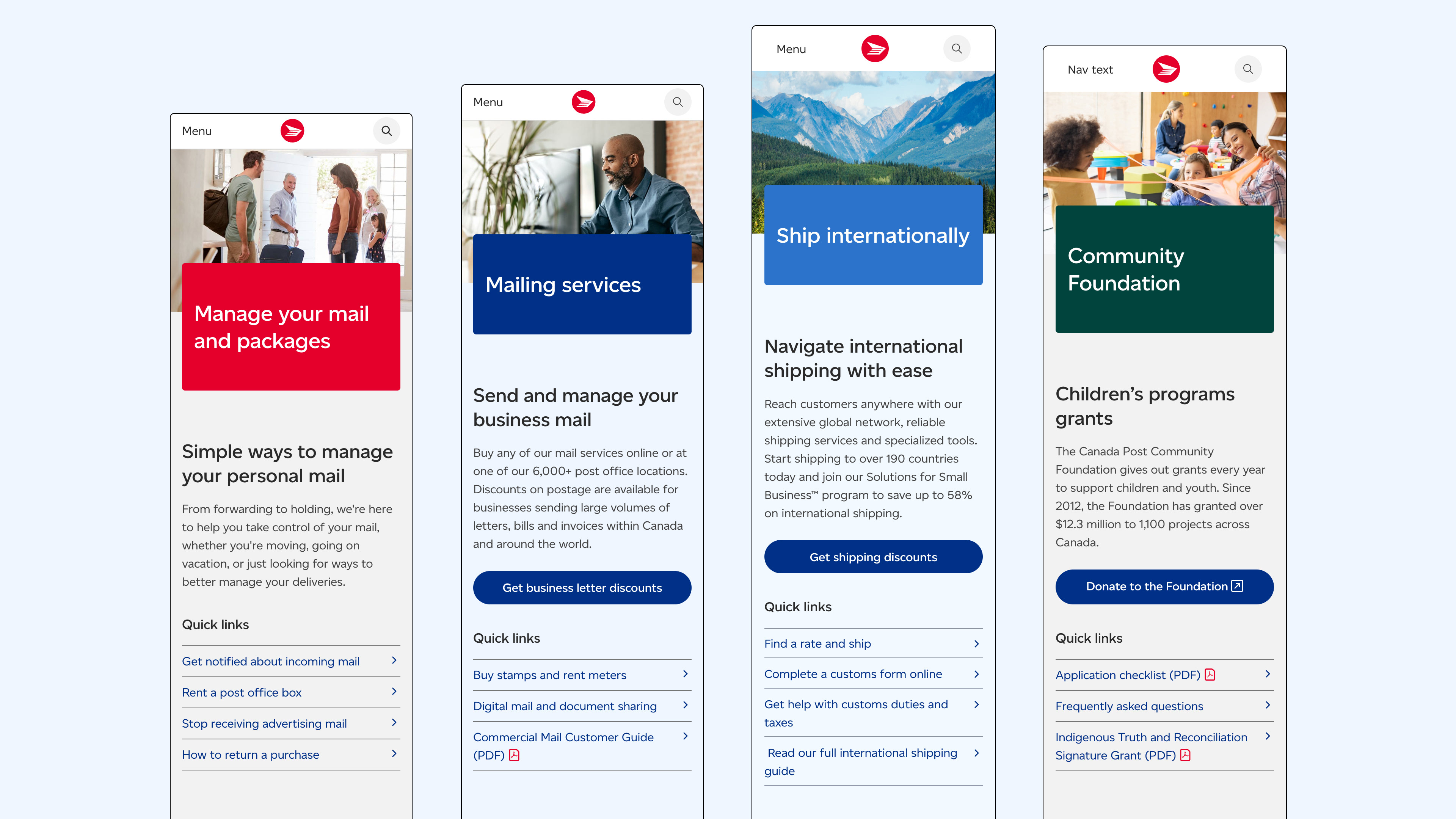 A large part of this brand initiative was the website, which serves millions of Canadians across the country. In 2016, Canada Post underwent their first website redesign. The lessons learned from this first iteration informed the new UXUI design and new brand identity. This gave us the opportunity to create an improved experience for many Canadians across the country.